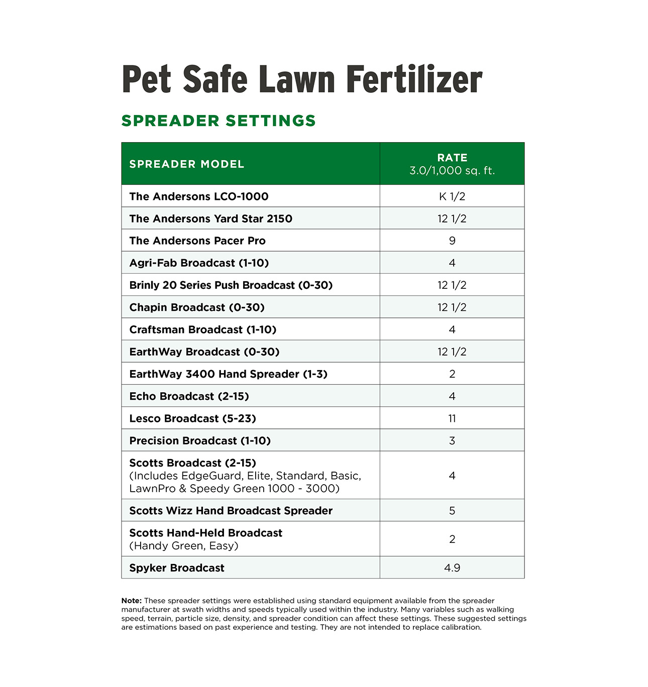 Made with The Andersons patented DG Technology, Pet Safe particles dissolve into millions of micro-particles when exposed to water, sending the fertilizer directly to your lawn’s root zone and away from paws and feet. This means you don’t have to worry about kids and pets staying off of the yard for a period of time following a fertilizer application. Just apply, water, and play! Your lawn is safe to walk on immediately after the product is watered in.